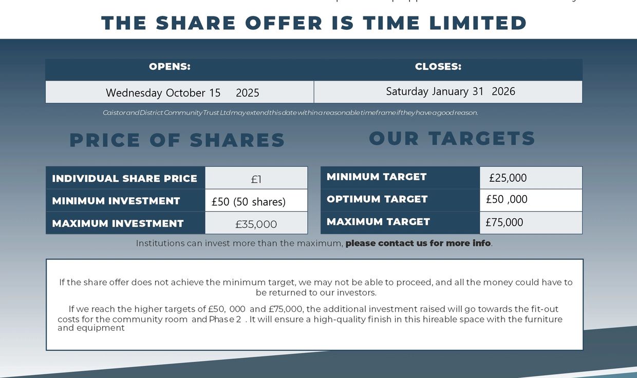 Copyright © 2018 Caistor and District Community Trust Ltd. Registered under the Co-operative and Community Benefit Societies Act 2014.